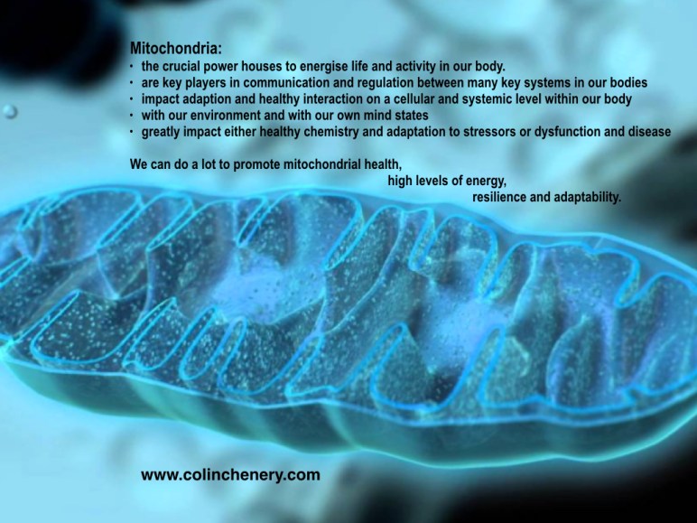 Gene expression, cell division, growth, death and regulation can be presumed to be coupled with mitochondrial metabolic signals. It’s all about communication and working together as a complex community as well has health and functioning of separate parts. Mitochondria are in the centre of the coupling of the energetic environment with cellular behaviour through a multifaceted set of mechanisms and pathways. These include epigenetic modifications at a cellular level and production of stress hormones as part of the body’s adaption to changes in conditions.